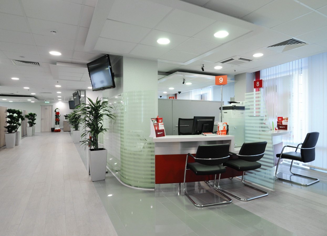 Дизайн нового операционного зала Московского кредитного банка в стиле open space.