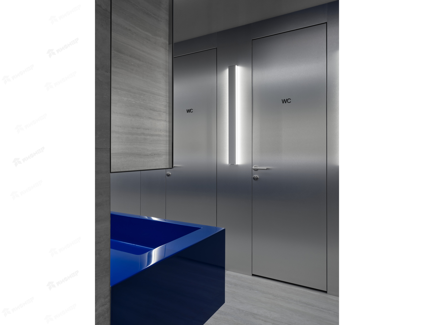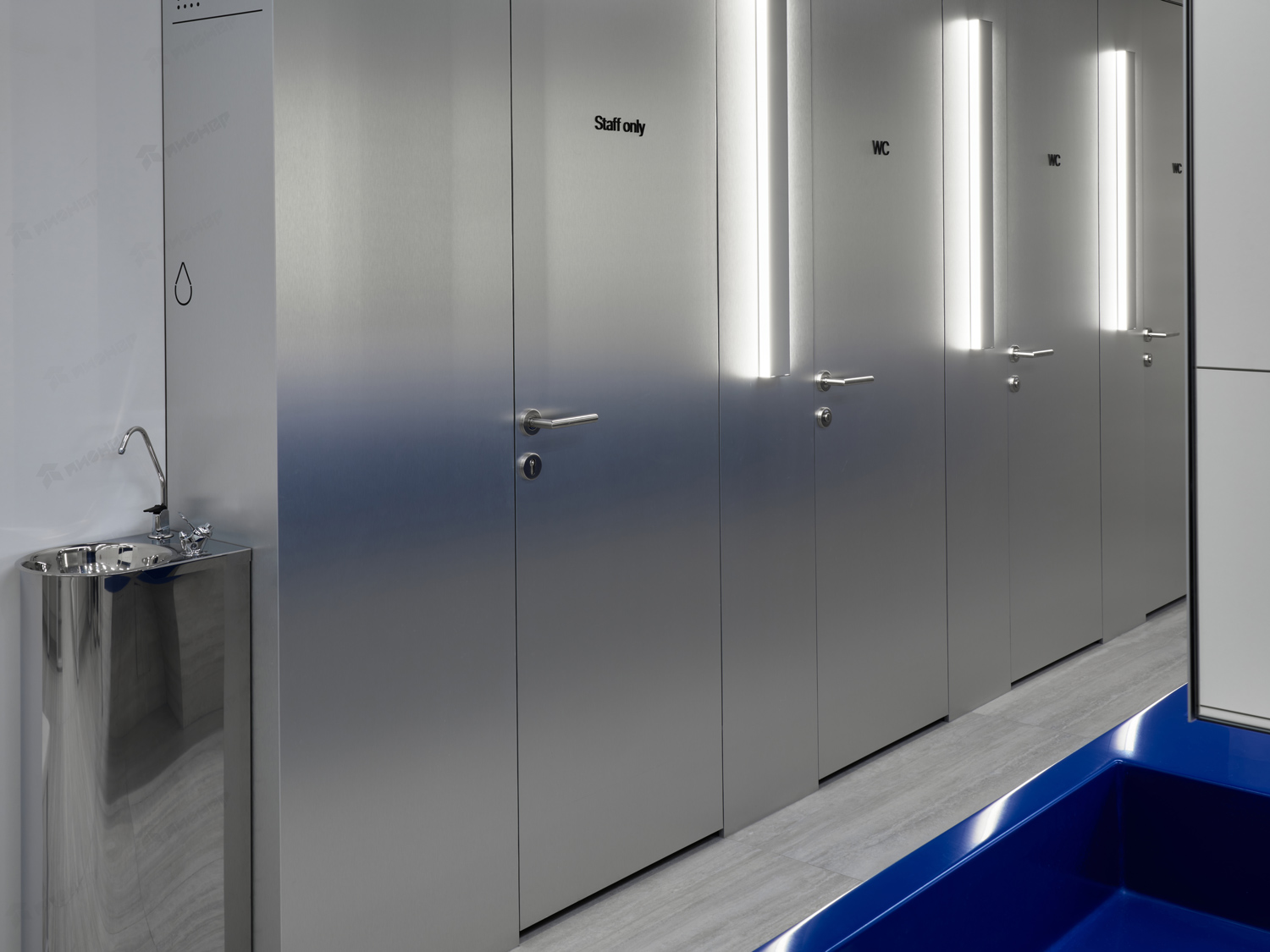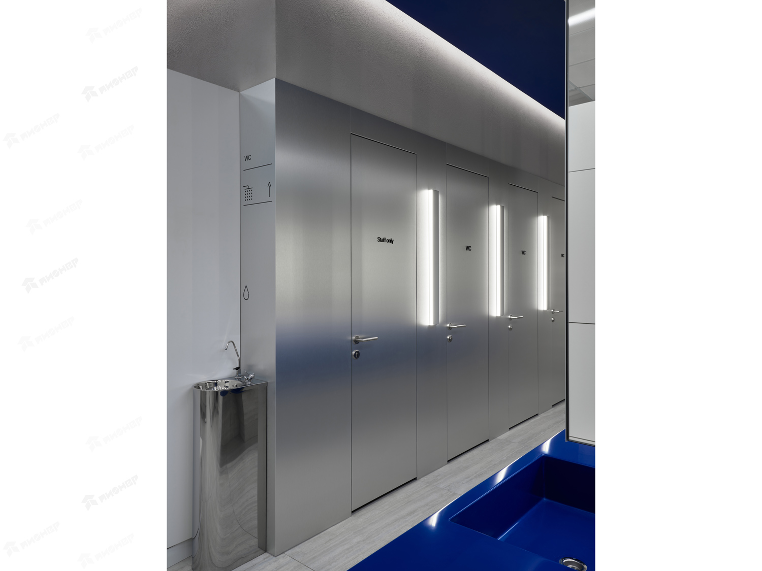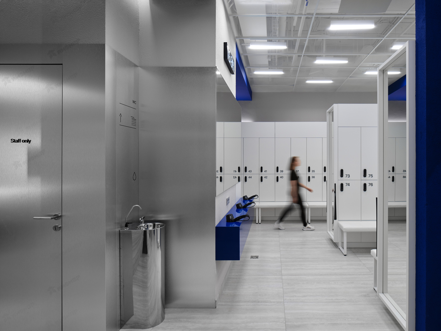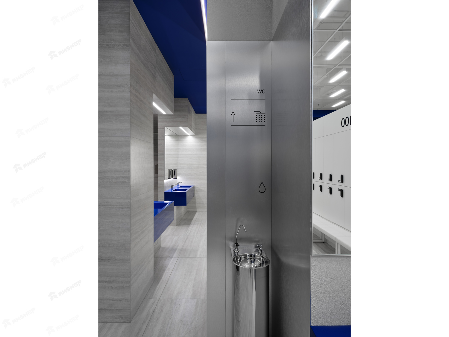 Облицовка стен и дверей в Раздевалке фитнес центра в ТЦ "Ботаника"