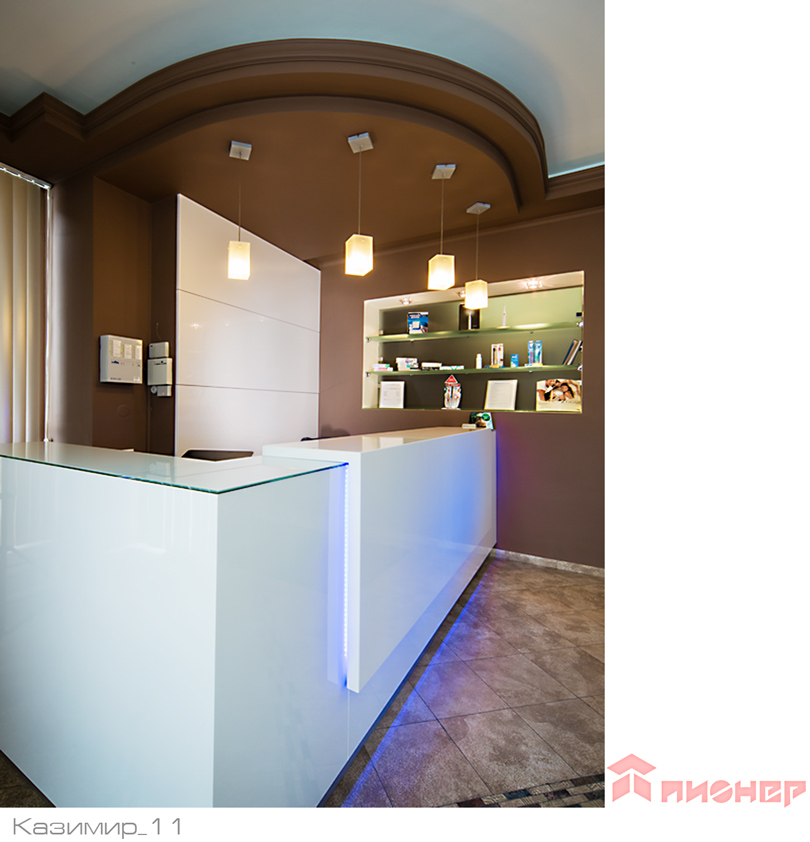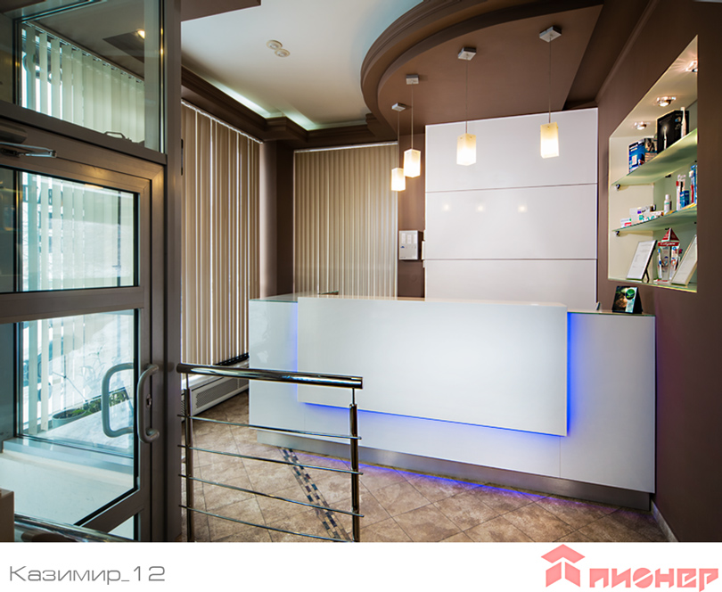 Этот ресепшн часто заказывают клиники стоматологии в белом цвете.