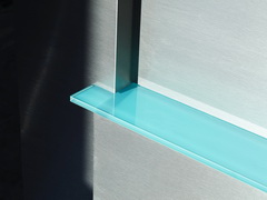 Фасадная часть этой модели выполнена без единого стыка из цельного листа алюмокомпозита, с безупречным исполнением углов. Отличительной чертой модели является стеклянная полка с торцевой светодиодной подсветкой.