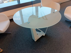 Дизайн стола очень удачно дополняется логотипом в виде треугольника. Он не входит в указанную цену, расчёт цены, конечно, происходит без индивидуальных особенностей, цена за однородный белый стол оптивайт.